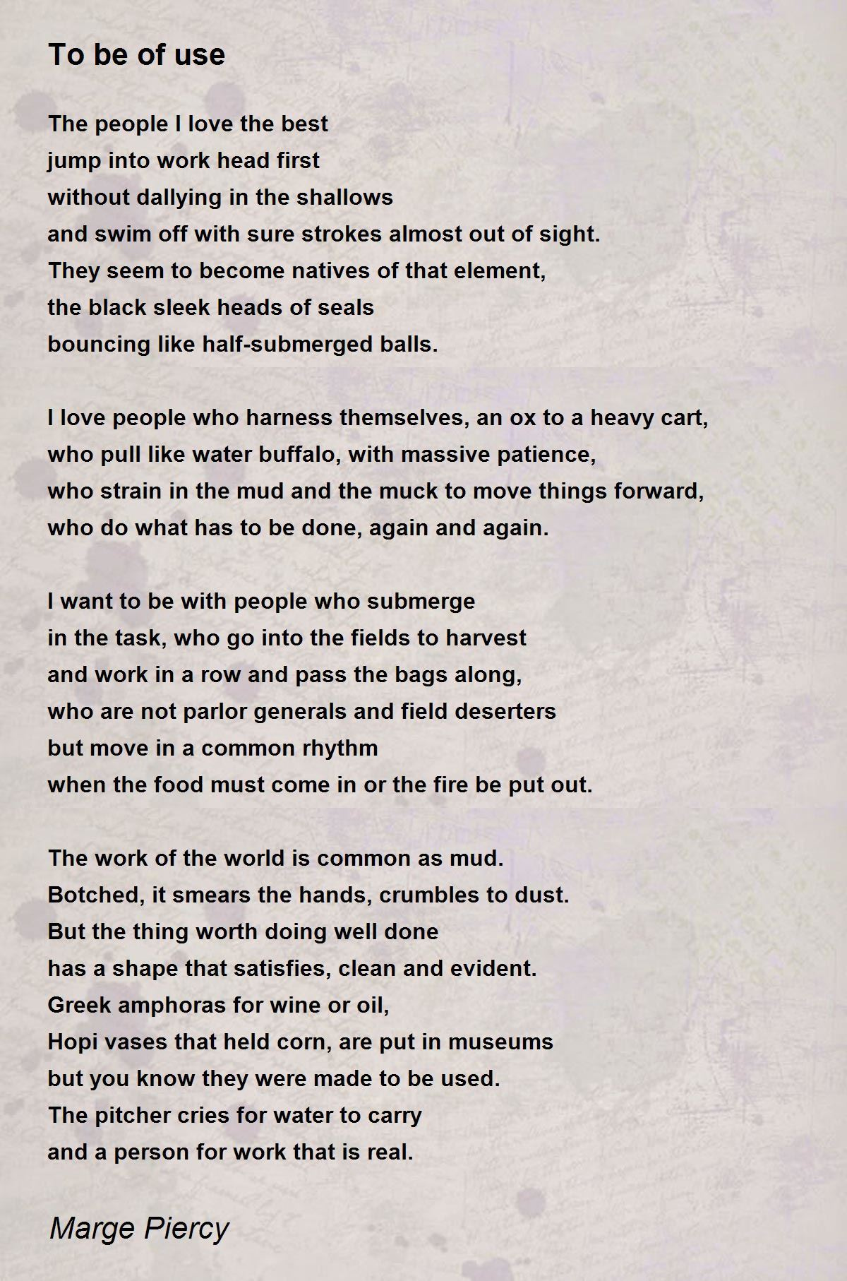 Here’s real power, and power to the purpose: The key is providing what is sustainable. “Sustenance is the root of sustainability.” We have to stop “the eighty men in the one bus” with all the world’s money and return to the politics of caring. According to Vandana Shiva: