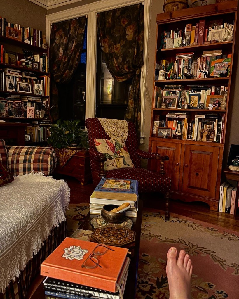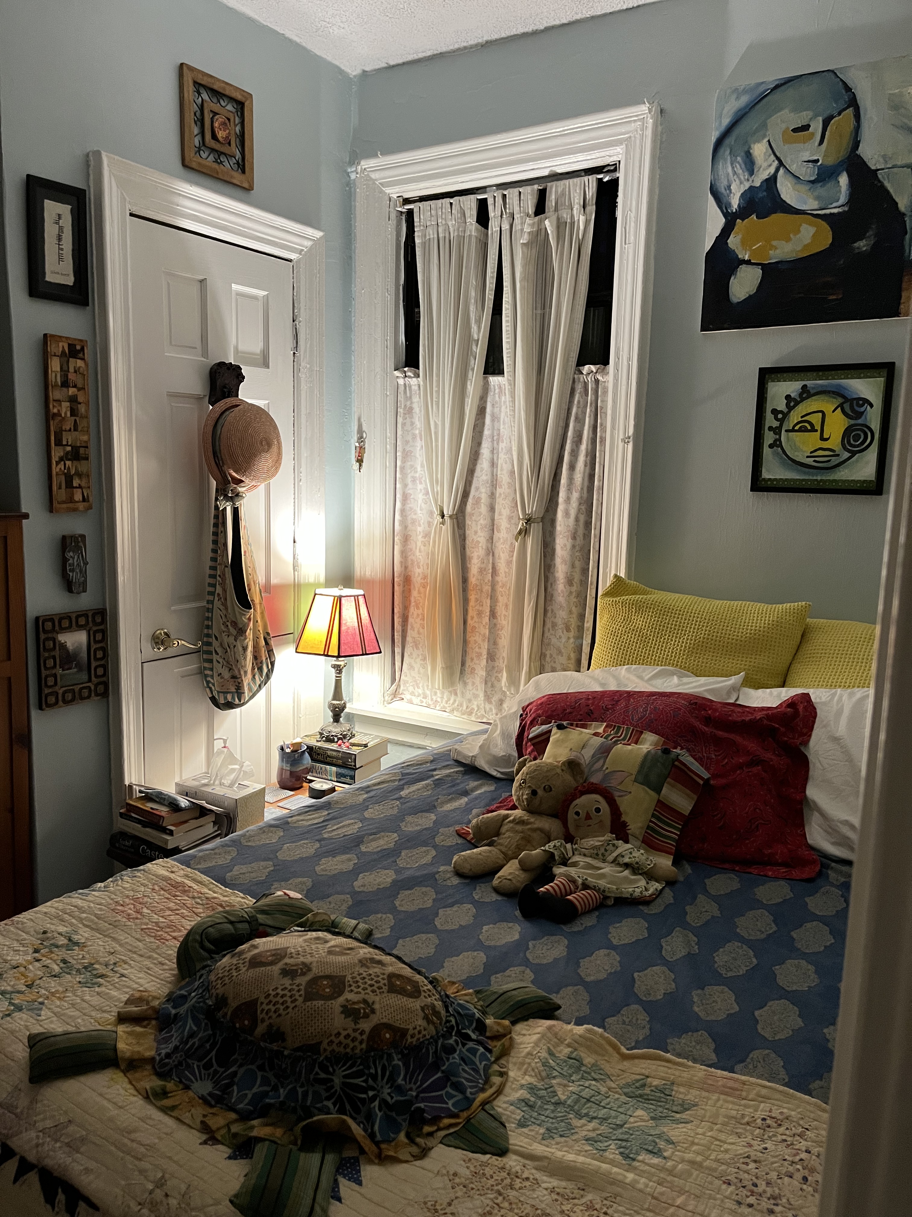 I awoke this morning remembering a summer day when my parents repurposed the feather-stuffed cushions on my mom’s fancy sofa—this light sort of champagne brocade-upholstered sleeper in the upstairs living room of our small split-level house with no real room for romping, so that room was sort of the place to do Play-Doh and draw on the walls (which we also had to help scrub), so naturally that fancy sofa from my mom’s days as a single naval officer got ruined in pretty short order; but rather than throw out the whole thing, my parents figured they could buy those zippered pillow cases made of striped ticking and stuff them (they went on to use these pillows for probably 20 years, by the way). I was a kid, maybe 9 or 10, when they laid out old sheets in the backyard, my dad split the cushions with a knife, and they tried to figure out how to transfer the feathers—millions of teeny tiny gray feathers—into the ticking. We kids chased the feathers that flew, but impressively most of them made it into stuffing, enough for four pillows, I think.