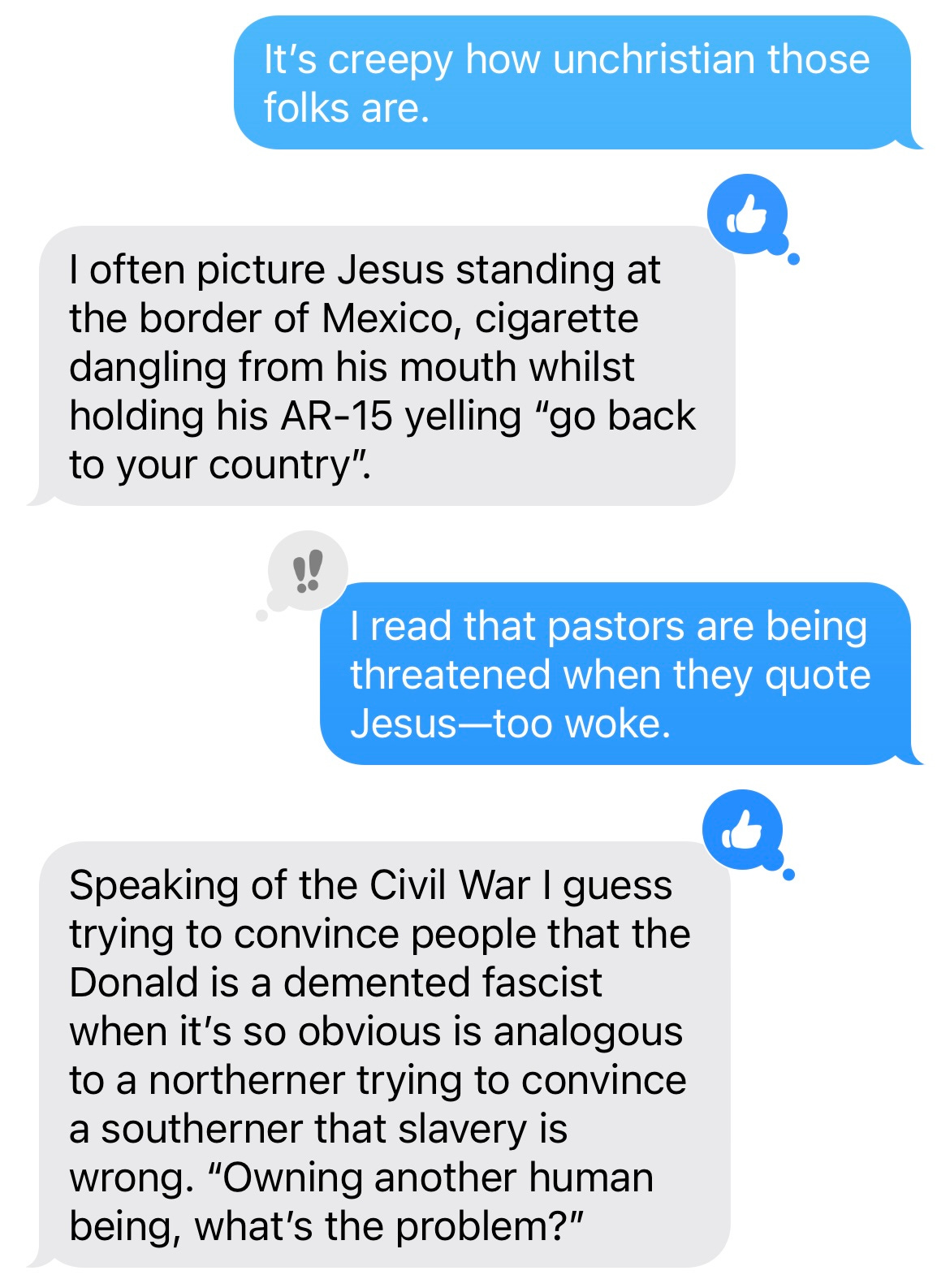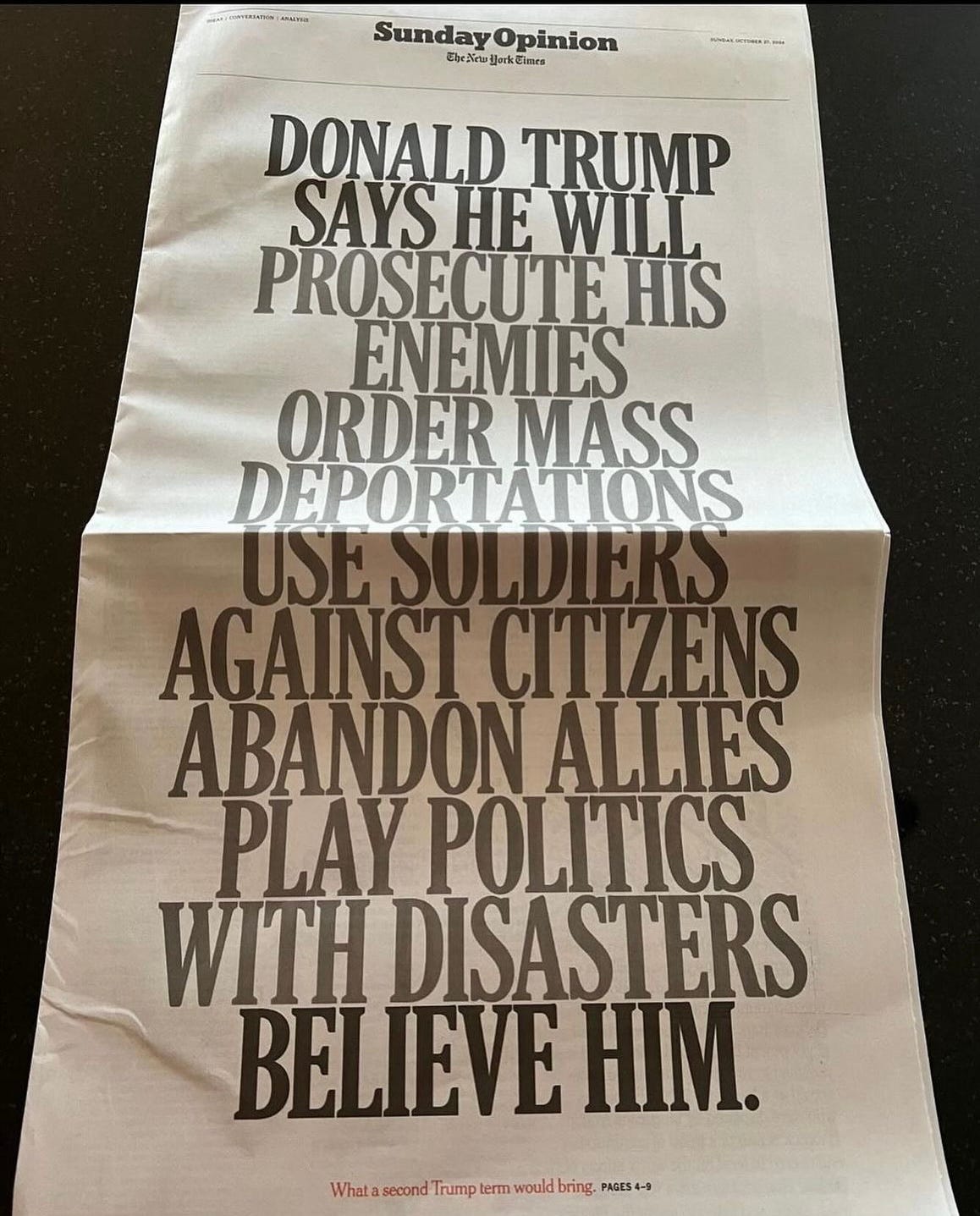 I became increasingly, deeply horrified watching this play as I realized that this is America’s future, quite literally, with camps and the rest of it, unless Harris is elected. And this time, no hyperbole.