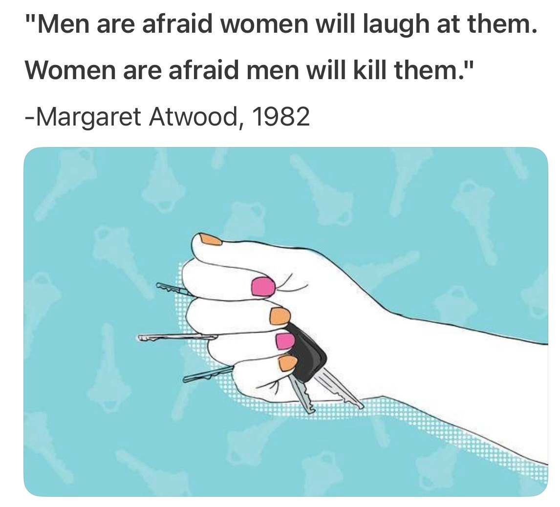 And women’s safety as well as freedom comes down to bodily autonomy and human (male) respect for that. In another post, Ms. de Castro uses pop music woo songs to discuss a view on ballad writing to bed women, that all that came about because patriarchy—not women, but patriarchy—put women in towers, in chastity belts, valued virginity over sensuality and then tied themselves, the men, into knots because they had no access to us women. And who’s fault is that?
