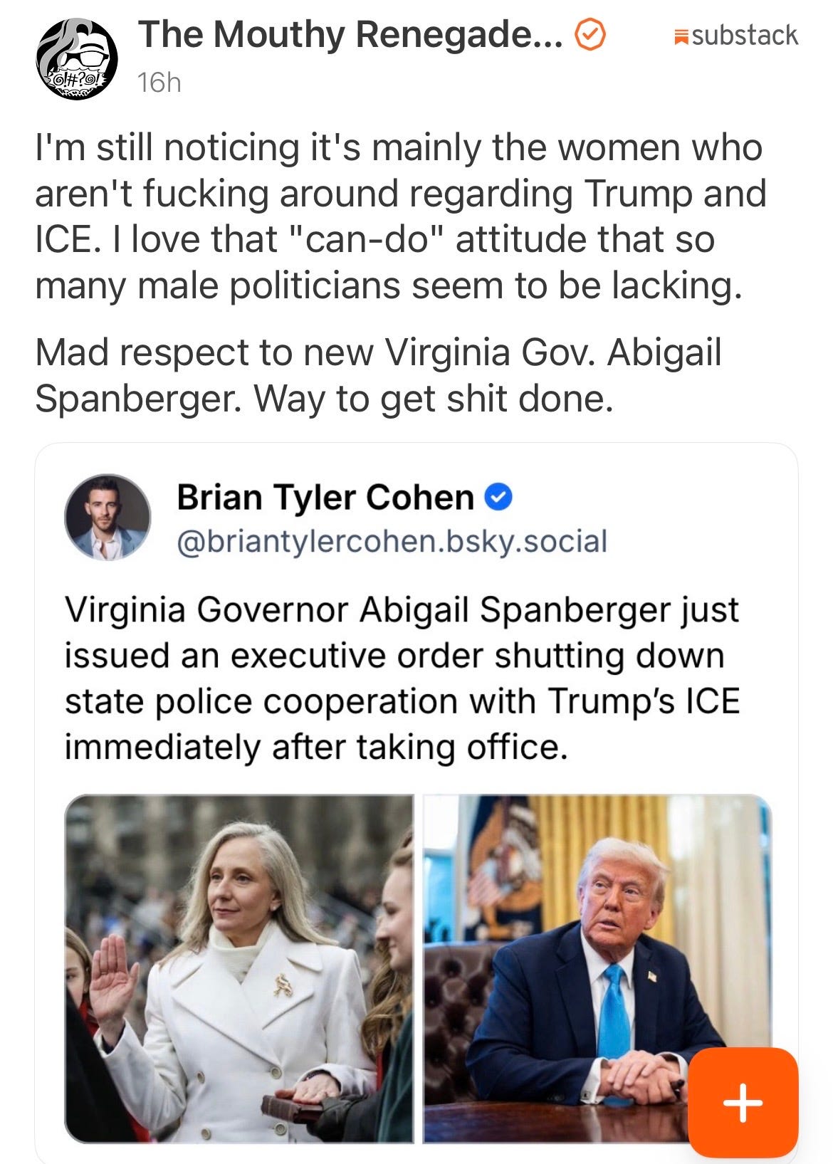 Gov. Abigail Spanberger (D-VA), the most recent example, was no sooner sworn in than she acted for the good of all, as per her office.