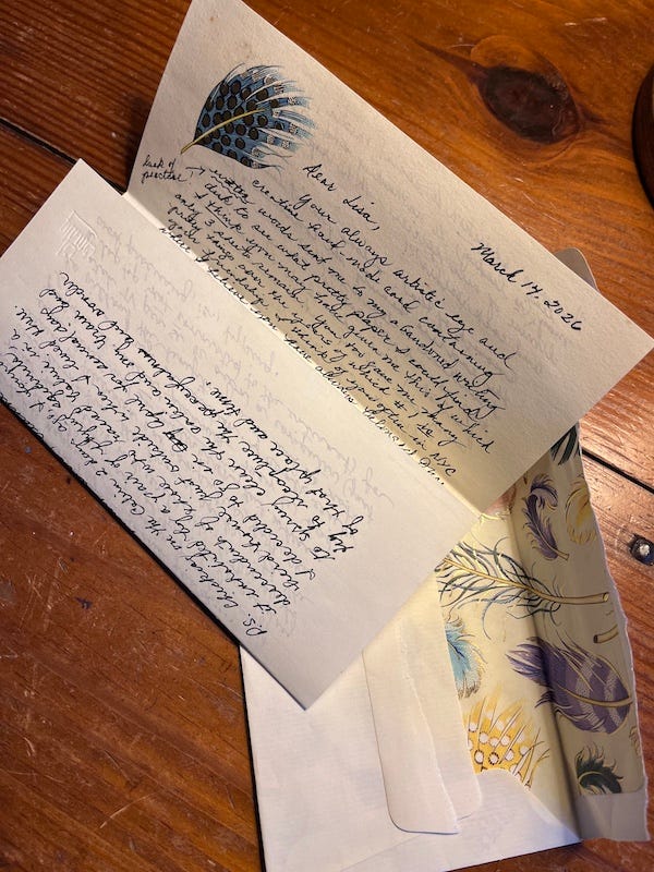 Yesterday I received the most beautiful thing in the mail: an actual handwritten letter from an old friend.