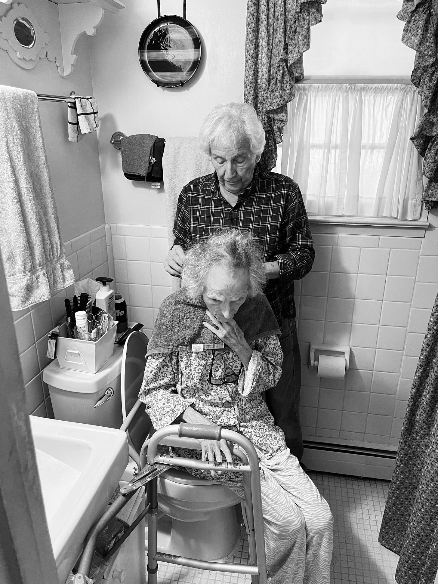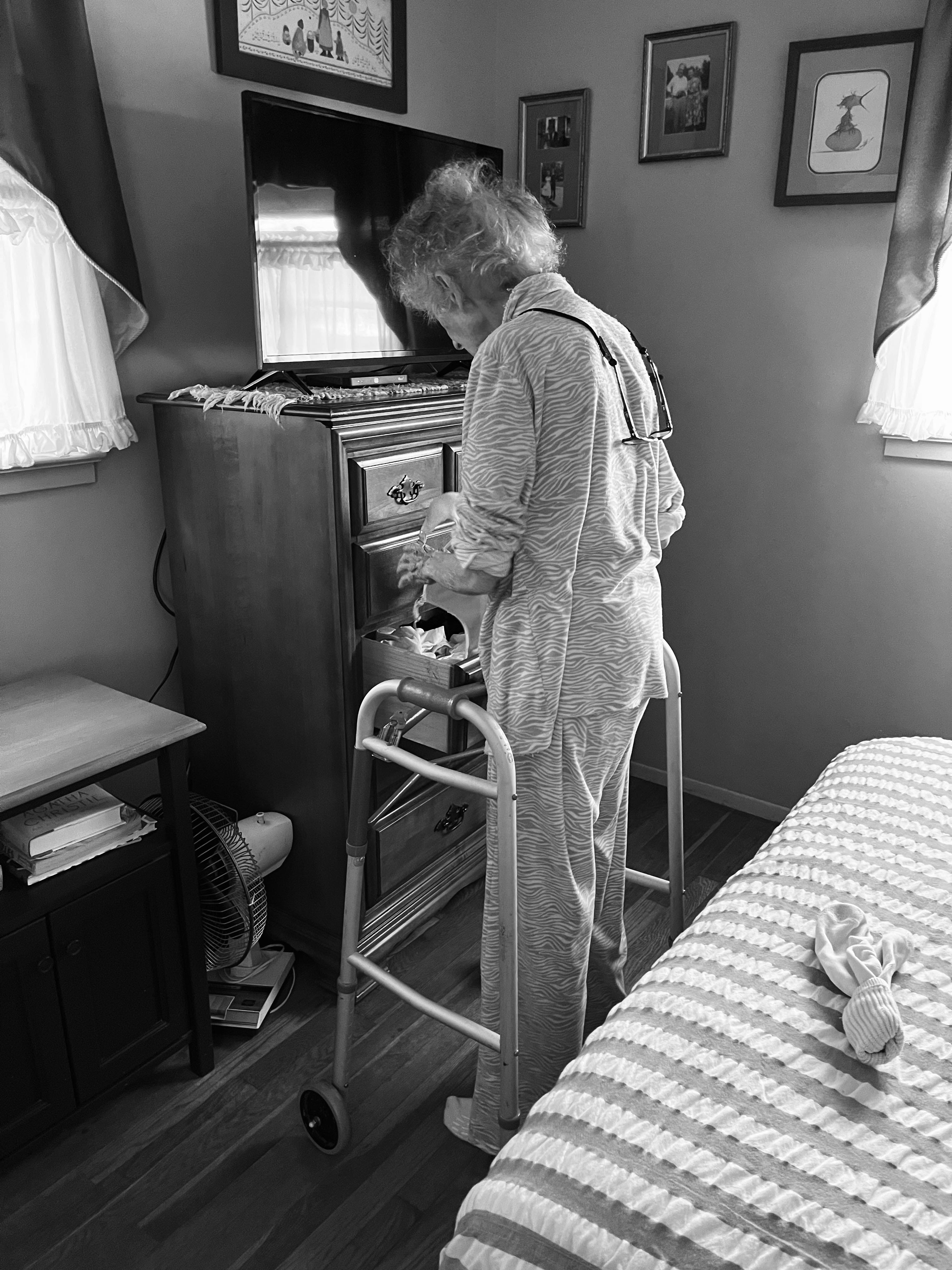 Over the past couple of weeks, my mom—once her hip fracture more or less healed, the physical therapy began working, and her relative independence grew (she can now walk through the laundry room to the bathroom on her walker and use the toilet, all unassisted)—seems to have more or less decided (as of this writing) to accept stasis, which means, I guess, “give up.” She will be 90 in January, should she live that long (and I’m more than willing to be astonished by a sudden rally; just yesterday she asked her husband to trim her hair “with the scissors on the righthand side of your dresser, not the rusty ones on the left,” so who knows?).