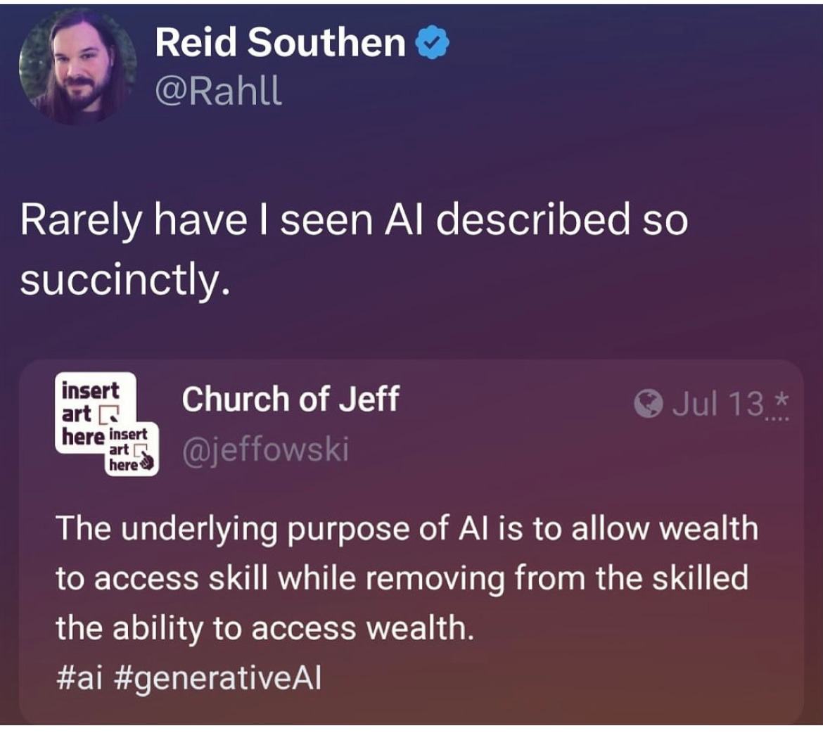 Anyone in America who works somewhere has probably been “acquired” by “a firm” of some sort for their “portfolio”; and as a result, we all of us feel this chapter of American democracy, as was, all too keenly: the Musk acquisition of America. I’ve read that the Republican voters who work in civil service never thought that the people they supported for office—that is, the venture capitalists and hedge fund managers and private equity firms—would actually strip the government and its Constitution and sell it for parts, and fire them, but they voted for Donald “You’re Fired” Trump despite all the evidence and have found out why he’s been bankrupt six times and still standing. Musk had swooped in and destroyed Twitter and it meant nothing to these voters, either. What did they think? Well, unlike Captain Renault in Casablanca, “a poor corrupt official” who knows full well how the game is played when he says, “I’m shocked, shocked to find gambling going on here” as he collects his winnings—these earnest civil servants living in their paper pushing D.C. bubble lack a social safety net moral compass. When you think life is only money, only “savings,” you may be missing, I don’t know, a heart. Or basic life experience. (And they are about to find out what unemployment looks like when there’s no money for them to claim, and no jobs to be found except the ones all those poor, now-deported undocumented people did. Godspeed.)