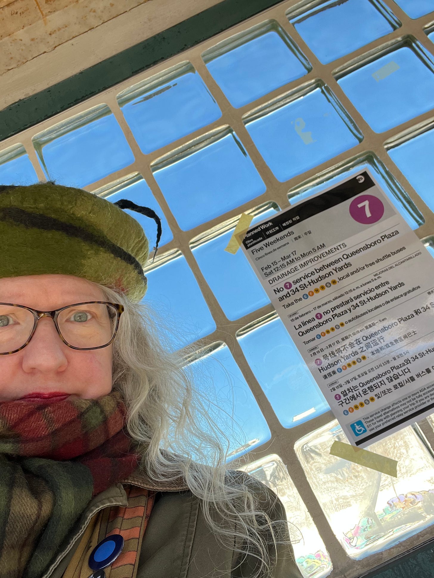 It’s an ordinary Saturday in Queens, which is to say “ordinary” if you aren’t thinking about the fascism. (I really can’t get over the way that Meta bleeps “Nazi” and “swastika” from videos, or that posters have to insert an * somewhere in each of those words so the post passes muster, even as Elon’s and Bannon’s sieg heils are fine.) I am waiting on a 7 Train, only to learn it’s not going all the way to Manhattan, so I have to switch the N or W, so my mind does a little adjustment. It’s all good.