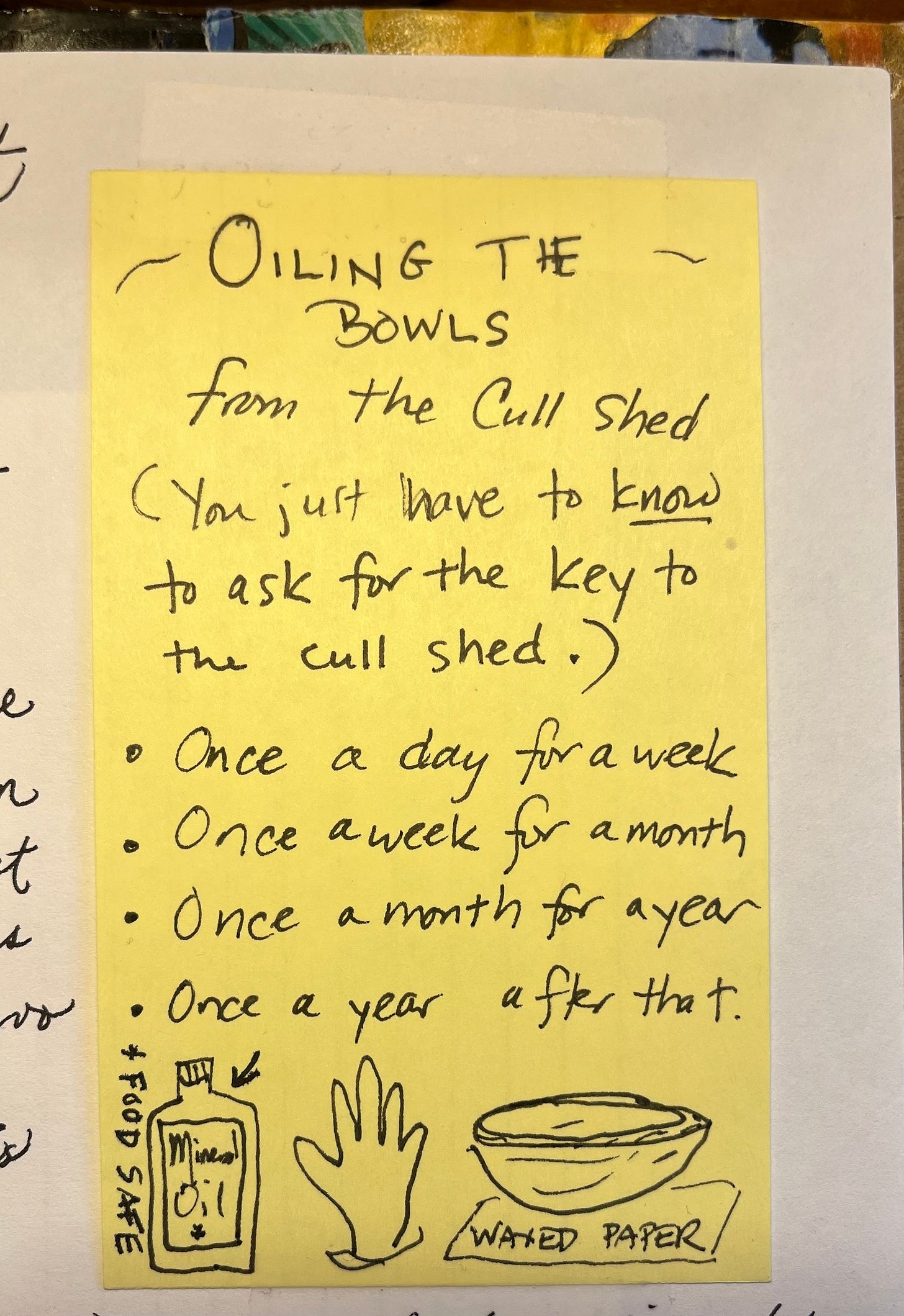 For example, here’s a task of basic maintenance.Simple chores. I did the annual bowl oiling during my lunch break one day since I work from home. So restful. Once the oil soaks in, they’re good to go for a year. I oil the cutting boards at least twice a year. Isn’t it nice to focus on that?