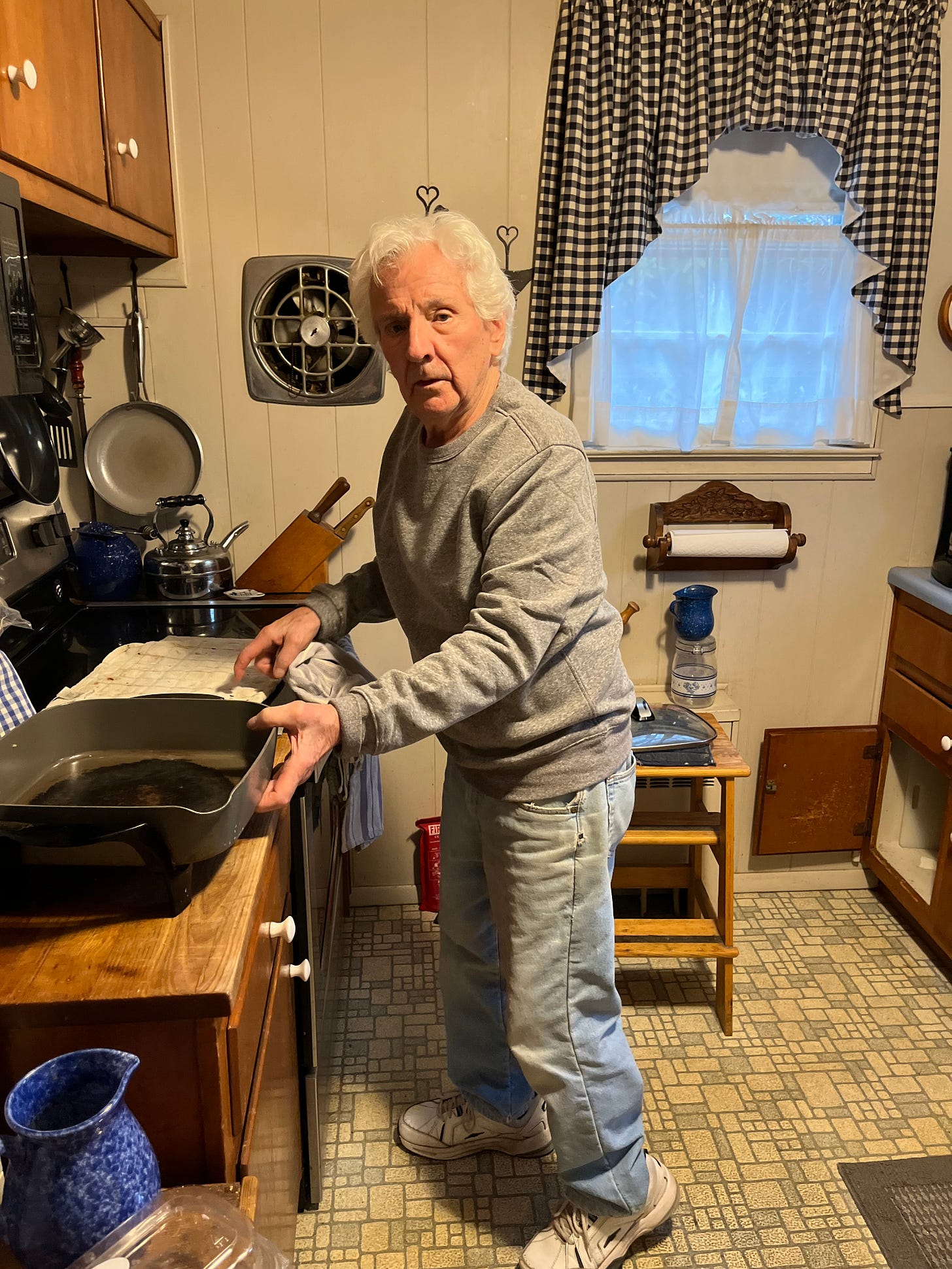 I just turned 59, so you’d think I’d just roll with all this, but in truth I got weepy, not because of the broom and dustpan, though sure, it was an inconvenience (I texted Jeff to please buy one at Lowe’s while he was there picking up a new latch for the 50-year-old front storm door, the one that caused our father to get locked out the previous morning while out getting the paper at 4:30 AM—fortunately we are all early risers and I heard the knocking while Jeff was in the bathroom and our mother still in bed with her coffee). It’s that all this infrastructure breaking down mirrors my parents’ physical and mental deterioration; inevitable though it is, and tough old birds that they are, it’s not something you can just smile through. Though we do, often as not.