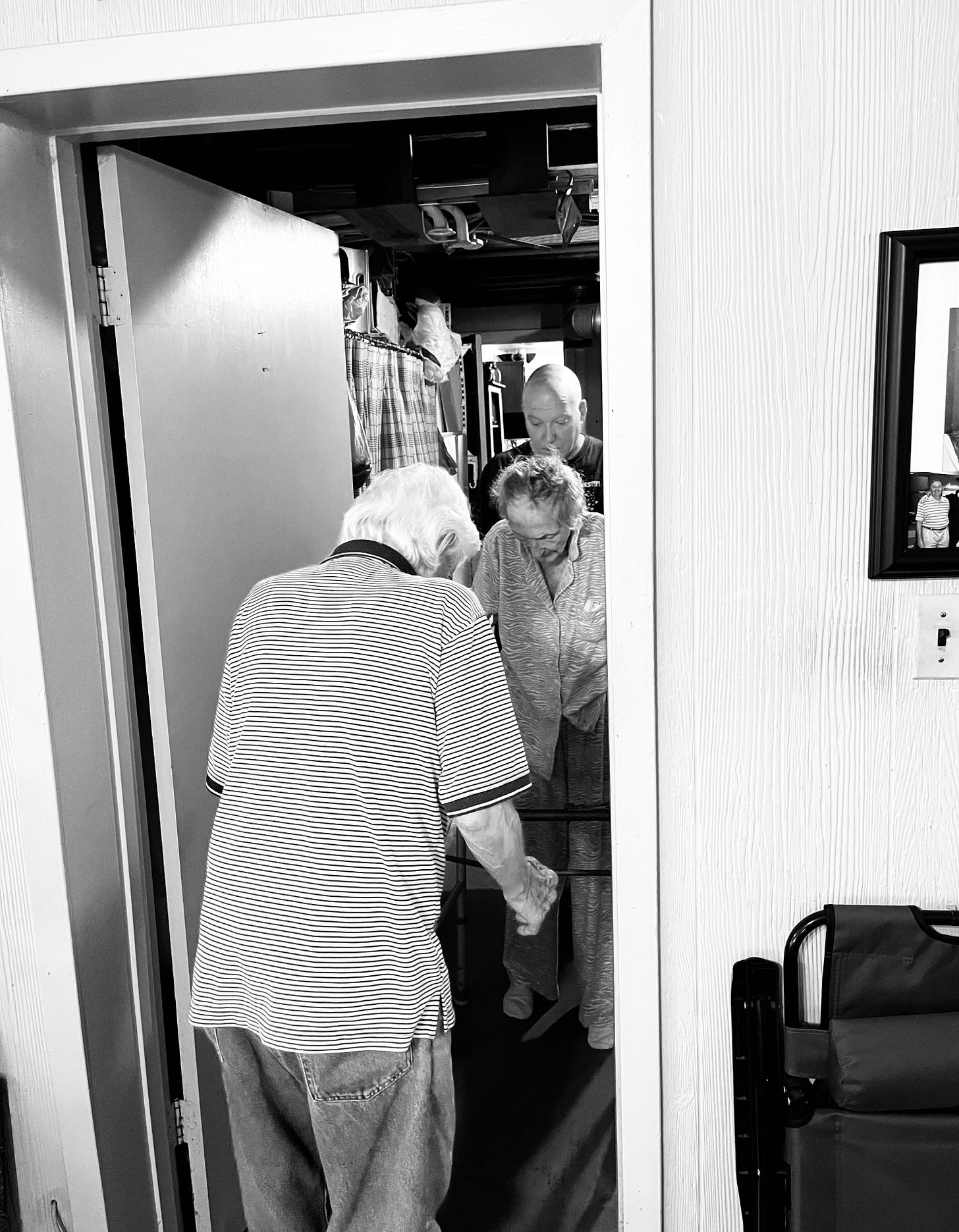 And if all this information isn’t chronological it’s because it’s a jumble in your mind and a jumble in routine almost immediately and consistently, and that’s because you must spend all the time you can in the dining room on your work computer having Zoom meetings and trying to work on this new project for your income to keeping coming, while also remembering to take walks (you’ve done three in three weeks) when you can because of your ever increasing stenosis, but you don’t dare leave your dad alone with your mom because he has this tendency to go into the kitchen to cook, say, or want to go to the store or run another errand, convincing himself that your mom will be fine for 10 or 20 minutes (I mean, she’d be alone in the hospital room, he says, and you say, monitored), but his 20 minutes usually stretches to 45), so you have to run into the other room to be with her when he leaves (she always needs something, like water, which you have to remind her to drink constantly (and she’ll only do it if you put in a straw), and that’s just what life in an invalid state is), so you handle it, and then help him with the groceries when he gets home, and pause to pick up your mom’s water cup again and push it over toward her with the straw as you say, “Have some water,” while she screws up her lips and sighs; you have learned by now that to get your mom to do anything, you have to suggest it, count to ten, and watch your suggestion become her idea before she does it, and you are once again beyond grateful for your theater training to carefully observe without judgment, as if you were your mom. Now drink this Ensure. Sigh. Mom, you point out, you are down to 83 pounds. She drinks.