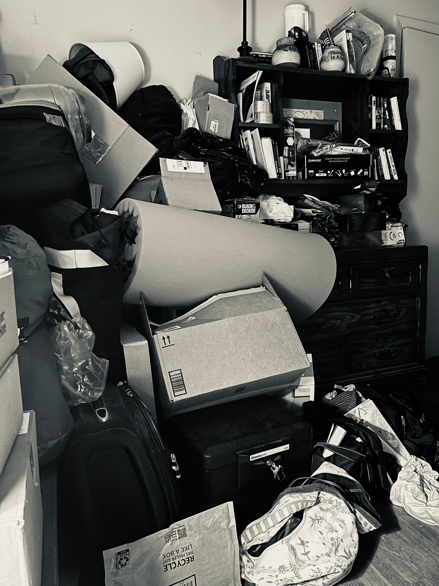 And in the meantime, you sleep in a room that was once your first bedroom which is now a dusty junk storage room with a bed in the corner, the bedpost serving as a closet and the front edge of an old book- and medicine- and tissue box- cluttered dresser for your toiletries, collecting your dirty clothes on the floor next to your backpack and purse. And you can’t help thinking, in passing, that this could be your life for years, your apartment in New York a distant memory, possibly a place you never again inhabit even as you pay your bills. But you can’t live thinking like that. Moment to moment, day to day. You can fight like hell and do the exercises and work to get better, or you can stay in bed and not get up. Both are reasonable options. But not, not now, for you; you have one option only because people are depending on you. And it could be so, so much worse. And it will be. Just a matter of time.